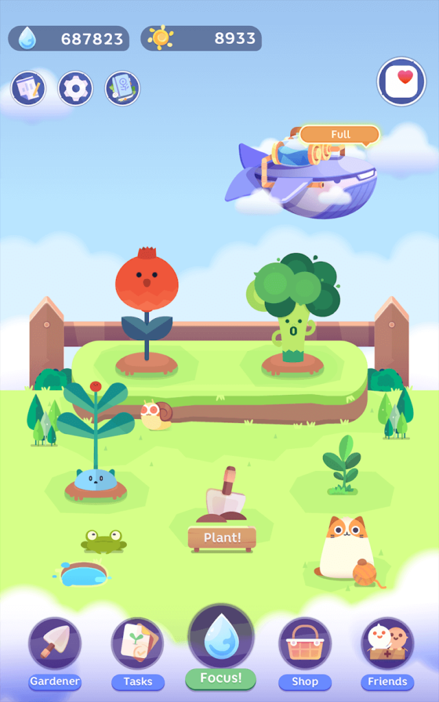A Focus Plant telepítésével minden zavaró tényezőt kizárva, játékos módon végezheted el a rád váró feladatokat. Minden tanulással vagy munkával töltött időért esőcseppek járnak, amelyeket arra használhatsz, hogy növényeket ültess és neveld őket. Minél többet használod, annál több területet tudsz megtisztítani és beültetni!