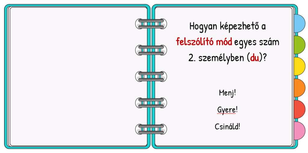 1. lépés: Fogalmazz meg egy rövid kérdést és írj néhány példát magyarul. Ehhez használd a jegyzetfüzet jobb oldalát: